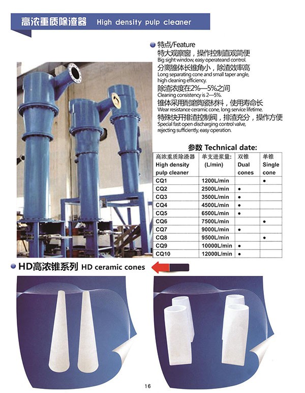2.輕質(zhì)除渣器,是從下面注入紙漿,因為離心力和重力,比重大的二次纖維往外運動,從下端集中,比重輕的雜質(zhì)接近圓心運動,從容器的上端排出。